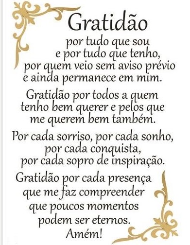 Assim, a gratidão pode estar relacionada não só às graças ou ajudas recebidas, mas a todas as experiências vividas por uma pessoa durante sua vida e seus relacionamentos. Um sentimento nobre que pode mudar sua vida.